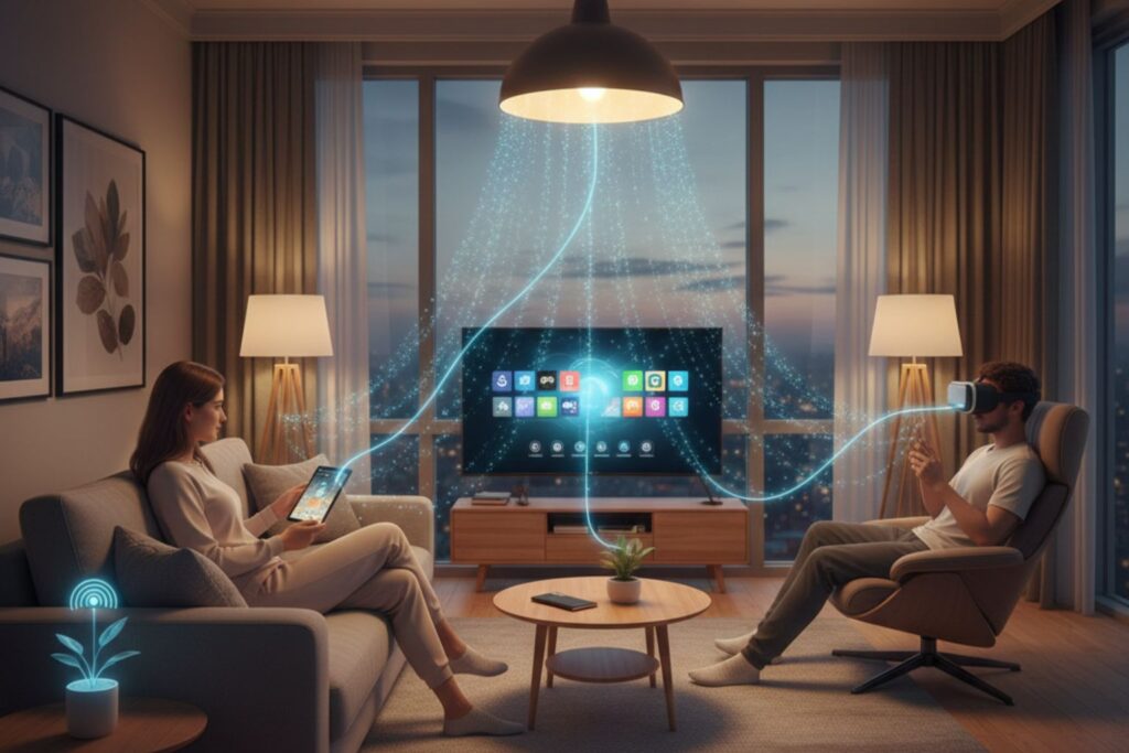 • Oficinas y Hogares Inteligentes con Li-Fi: Empresas como pureLiFi ya están instalando sistemas en oficinas y entornos industriales donde la seguridad y la velocidad son críticas. En el hogar, cada lámpara inteligente podría ser un router 5G de luz.