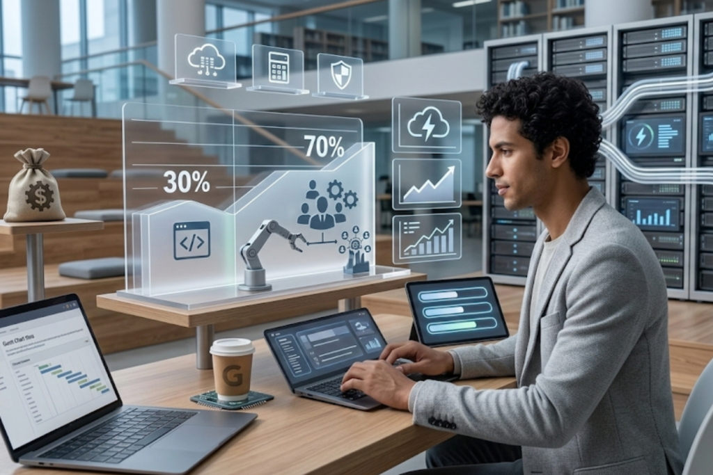 En la industria tecnológica es un estándar comprobado que hasta el 70% del presupuesto de un proyecto exitoso de Inteligencia Artificial se destina a la integración de sistemas, limpieza de datos y gestión del cambio, y solo el 30% al algoritmo o software en sí.